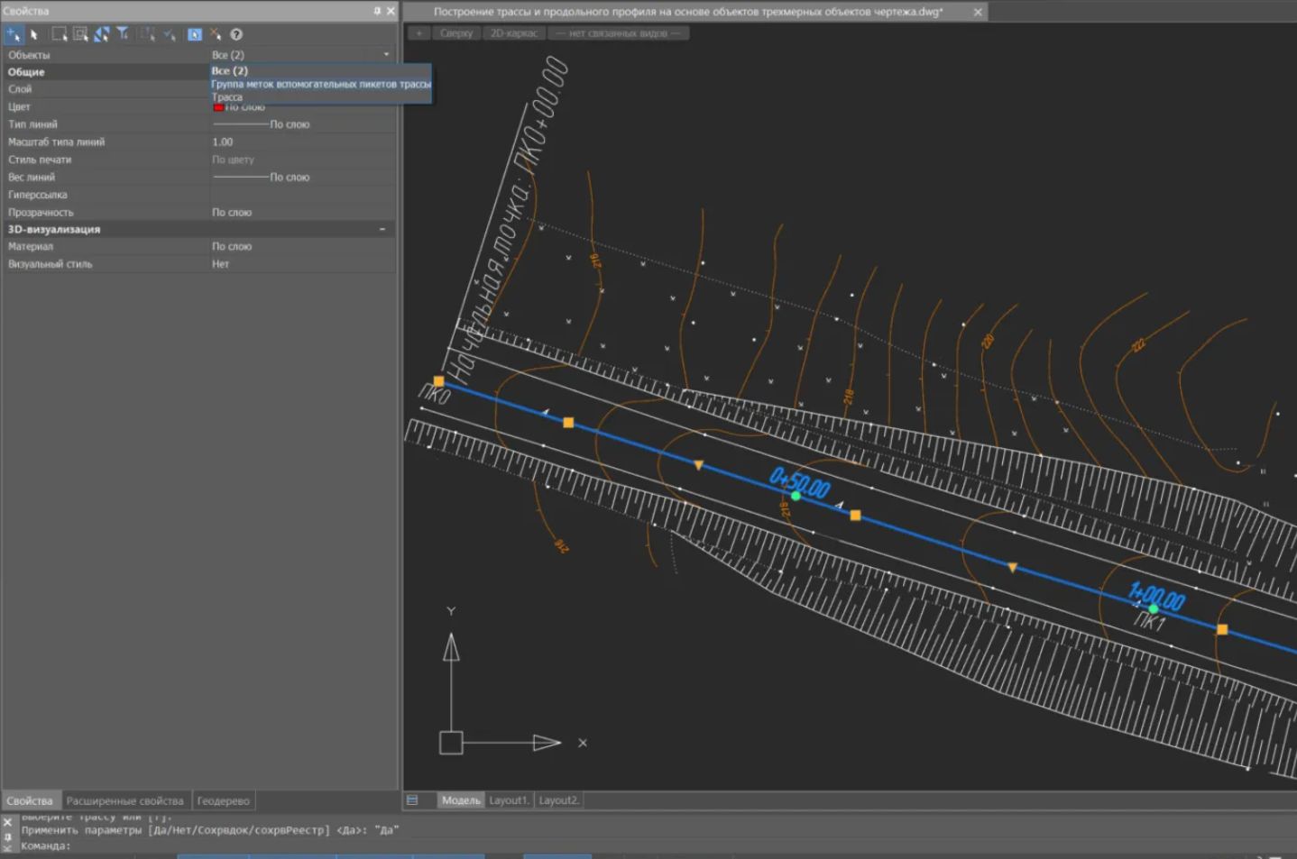- вспомогательный пикетаж – с приращением 50 м для детальной разметки сложных участков.