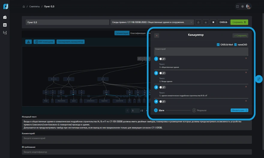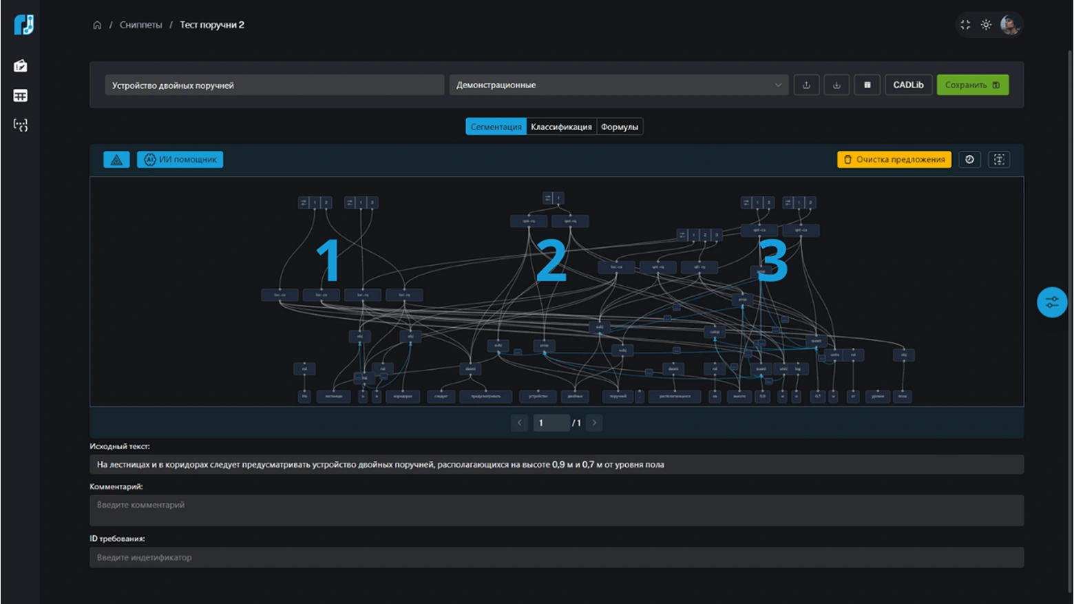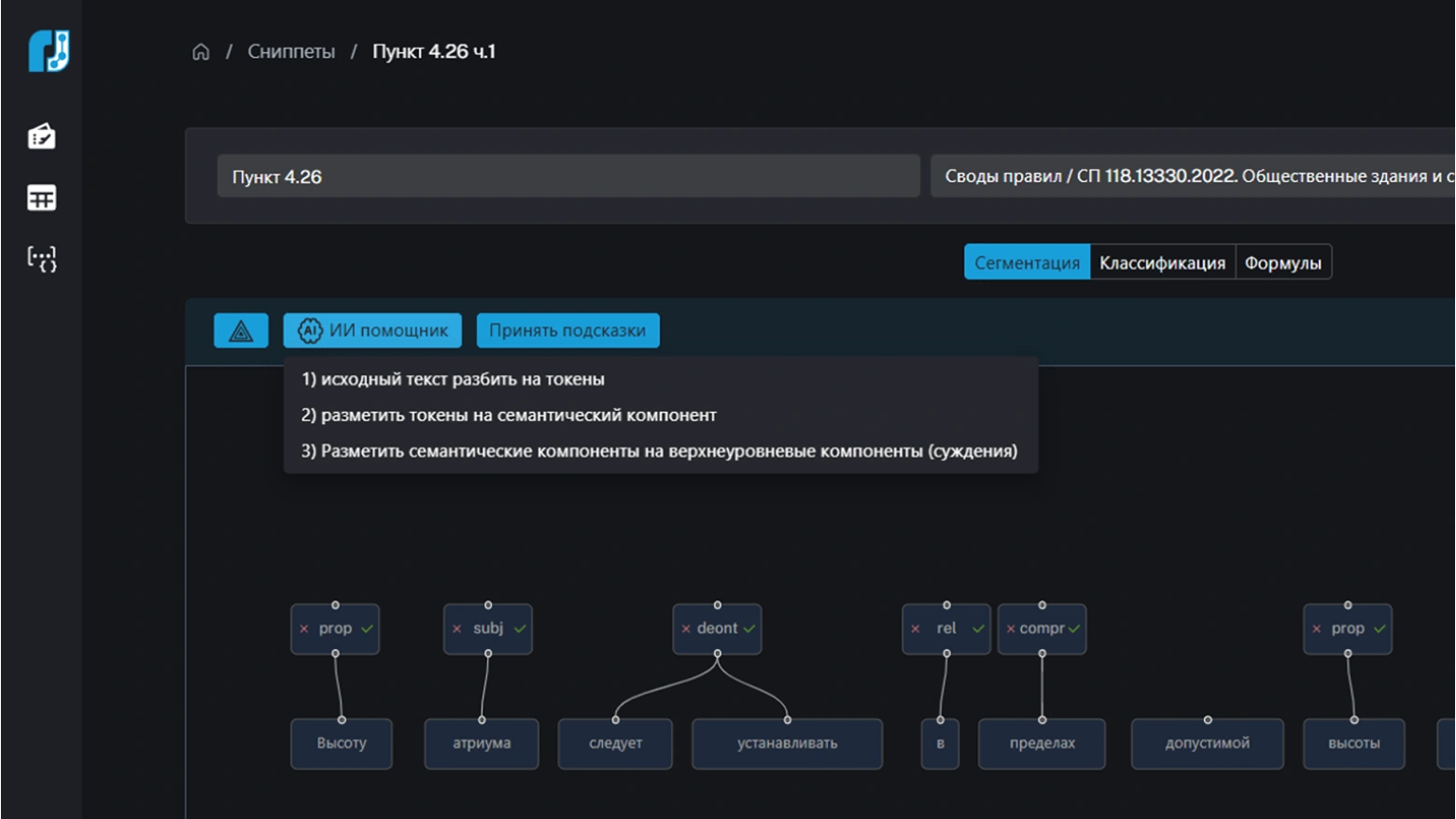 Для точного преобразования текста требований в программный сценарий проверки ЦИМ разработана уникальная методика семантического анализа, автоматизированная с помощью подсказок от нейросети