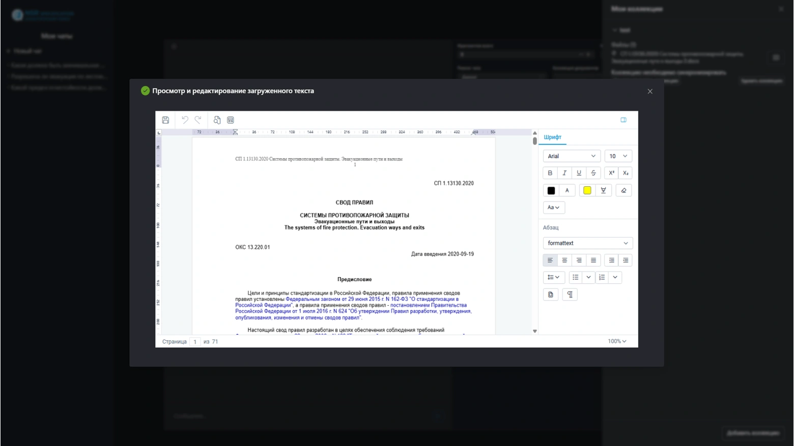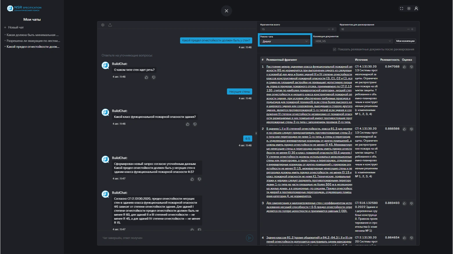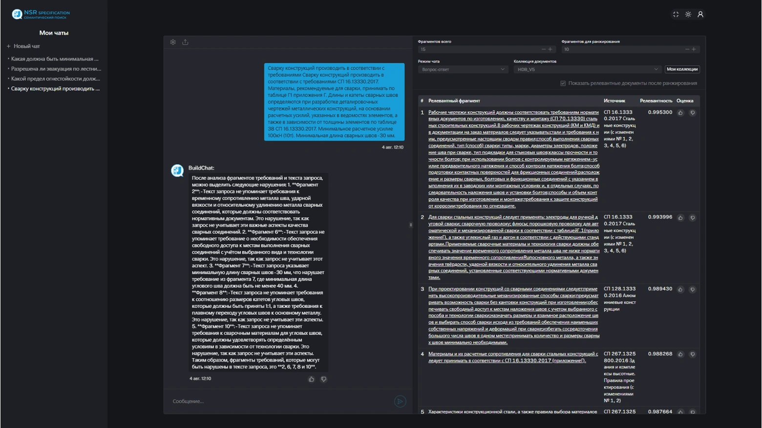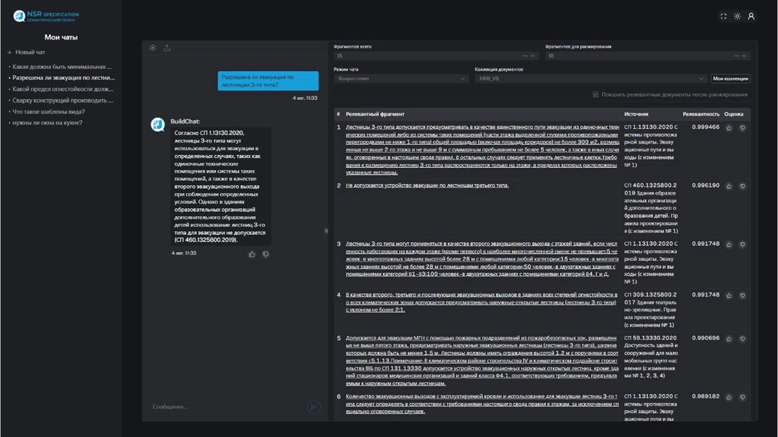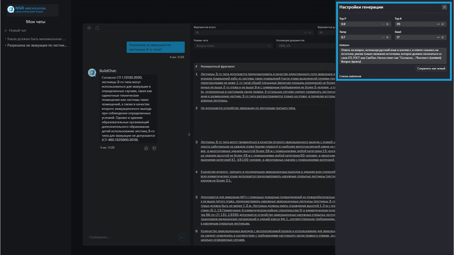 При обработке пользовательского запроса происходит мгновенный поиск фрагментов норм и стандартов, которые могут содержать ответ, после чего ИИ анализирует их согласно установленному сценарию, что обеспечивает уменьшение галлюцинаций